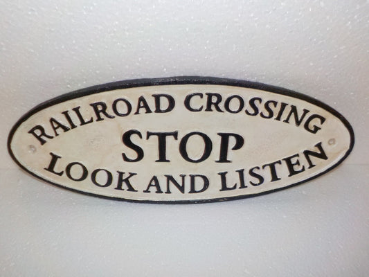 Cast Iron Sign -Railroad Stop Look and Listen Plaque