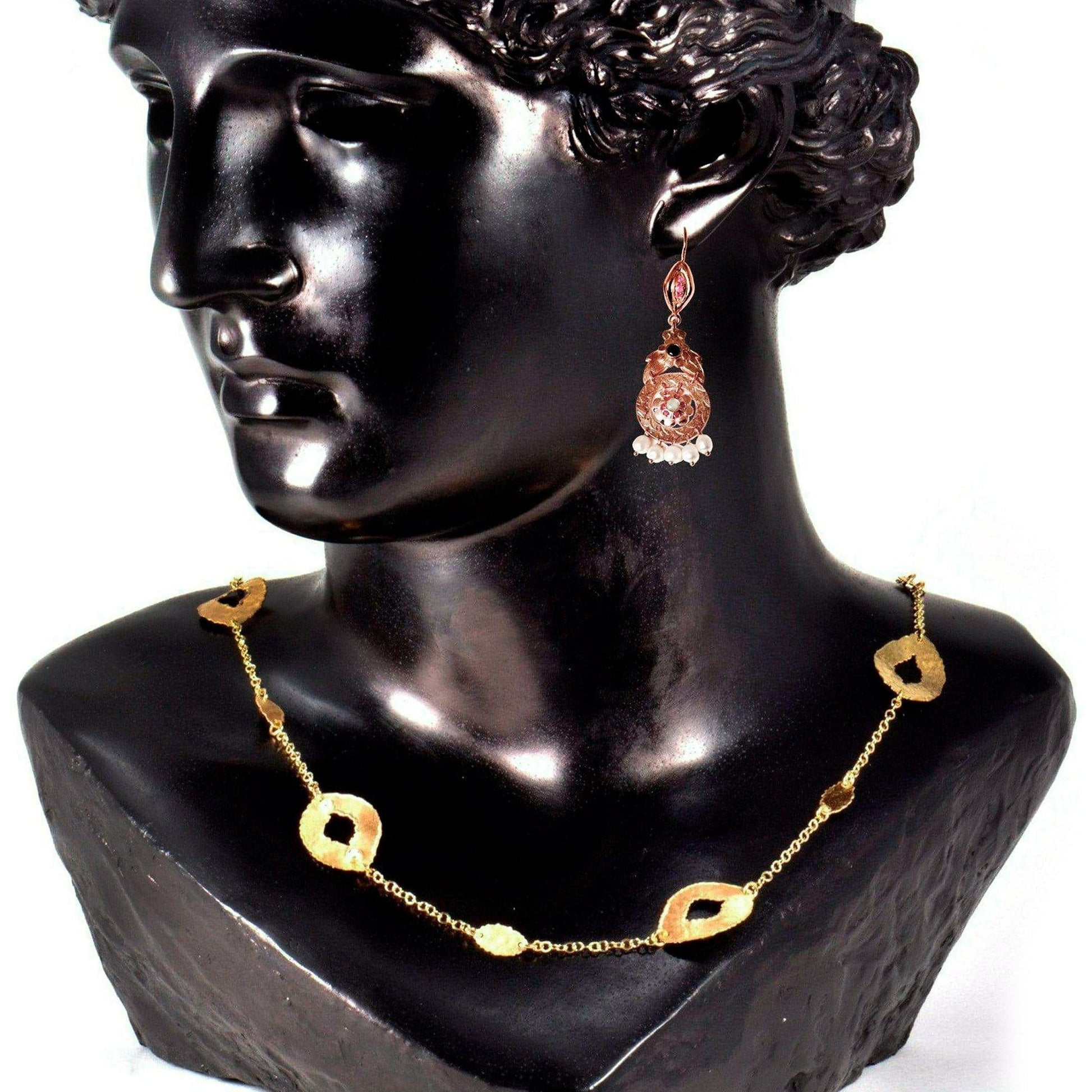 I colori delle pietre spaziano dal rosa chiaro a quello pi¨´ intenso, dal verde al nero. Questi orecchini sono leggeri e comodi da indossare, si adattano perfettamente sia a look eleganti che casual, diventando un accessorio versatile per ogni occasione.
