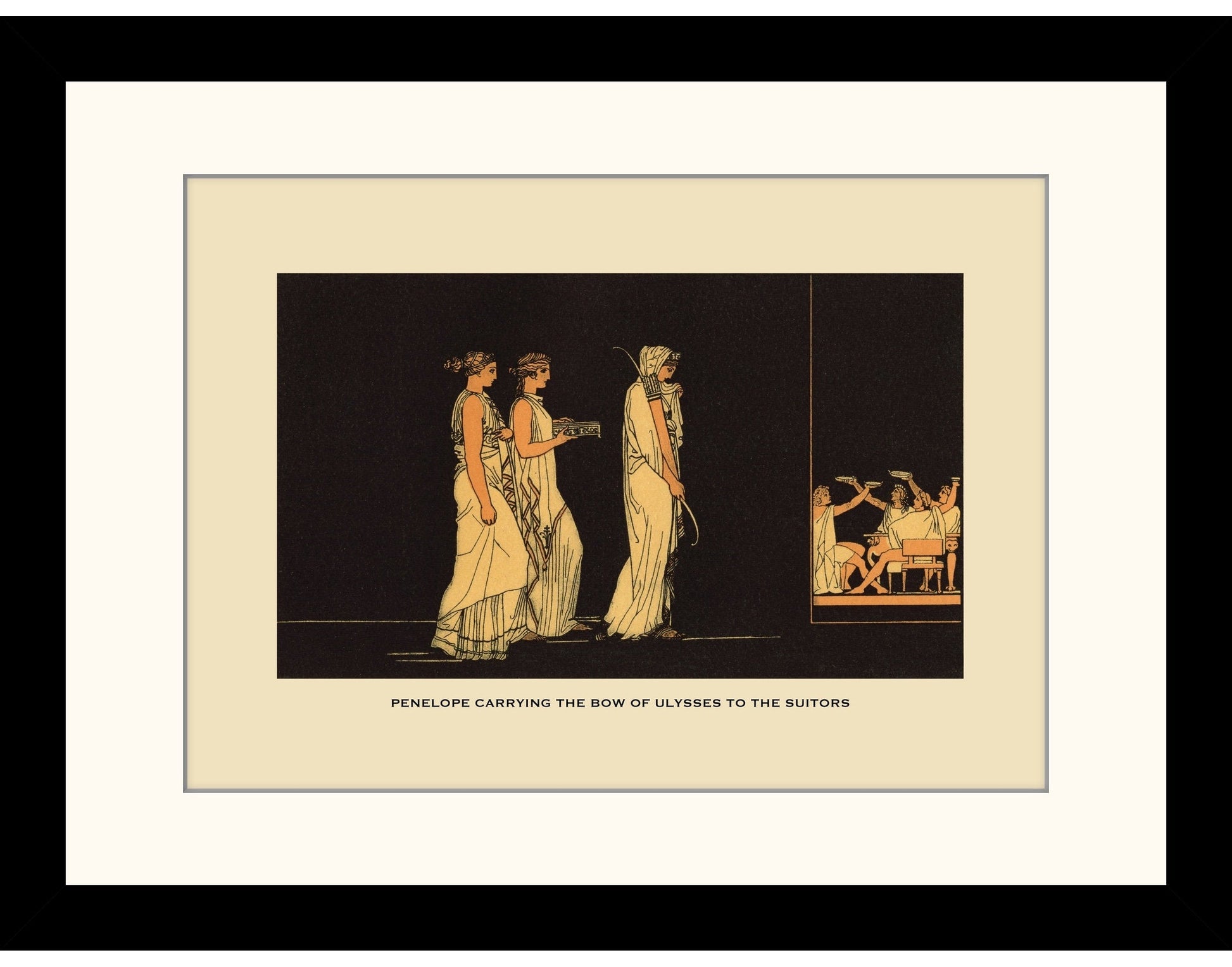 This vintage reproduction of Penelope Carrying The Bow Of Ulysses To The Suitors Print is a faithful representation of an original 19th-century engraving ¡ª perfect for classic interiors and collectors of antique-style wall art.