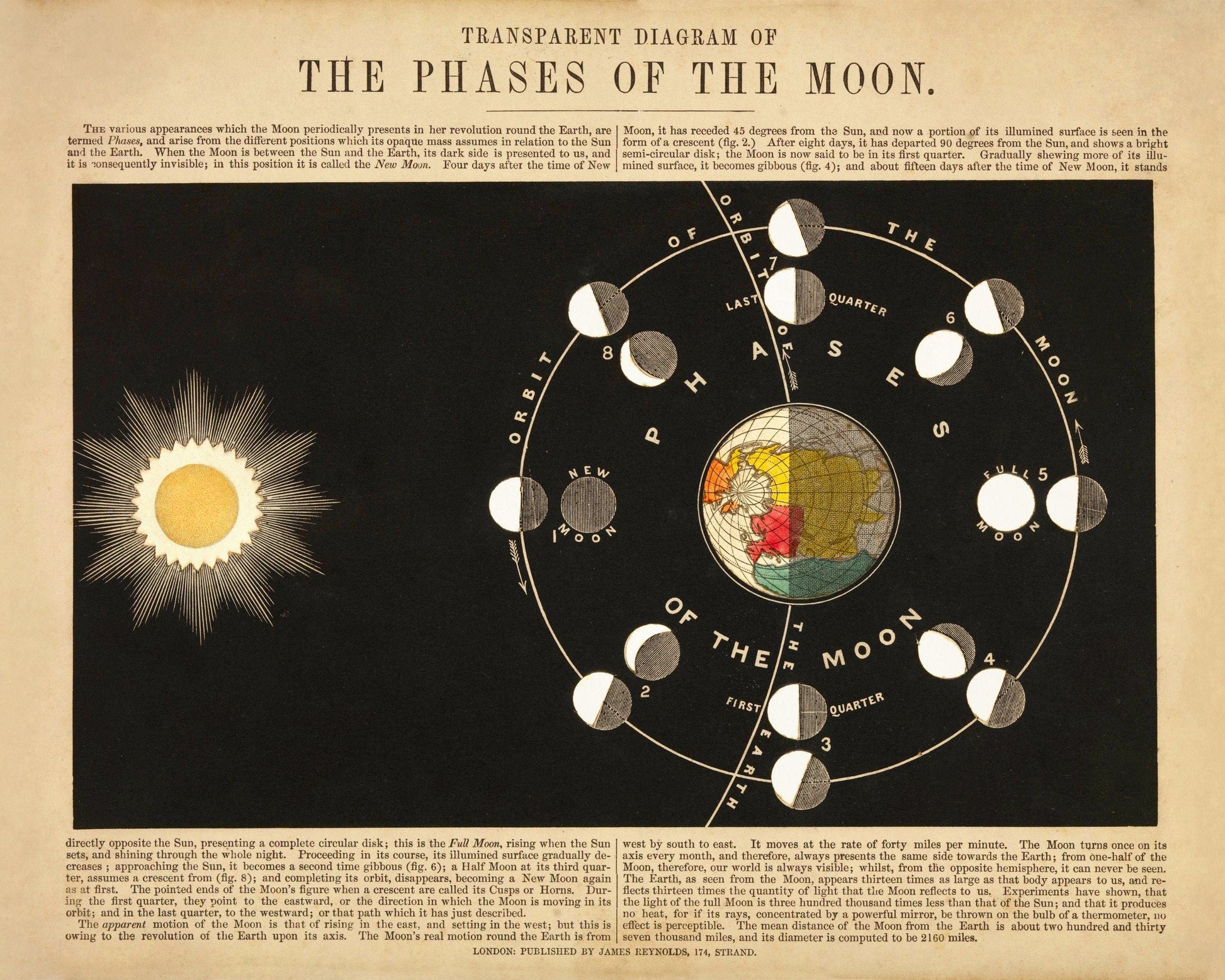 This vintage reproduction of Phases Of The Moon Print 1846 is a faithful representation of an original 19th-century engraving ¡ª perfect for classic interiors and collectors of antique-style wall art.