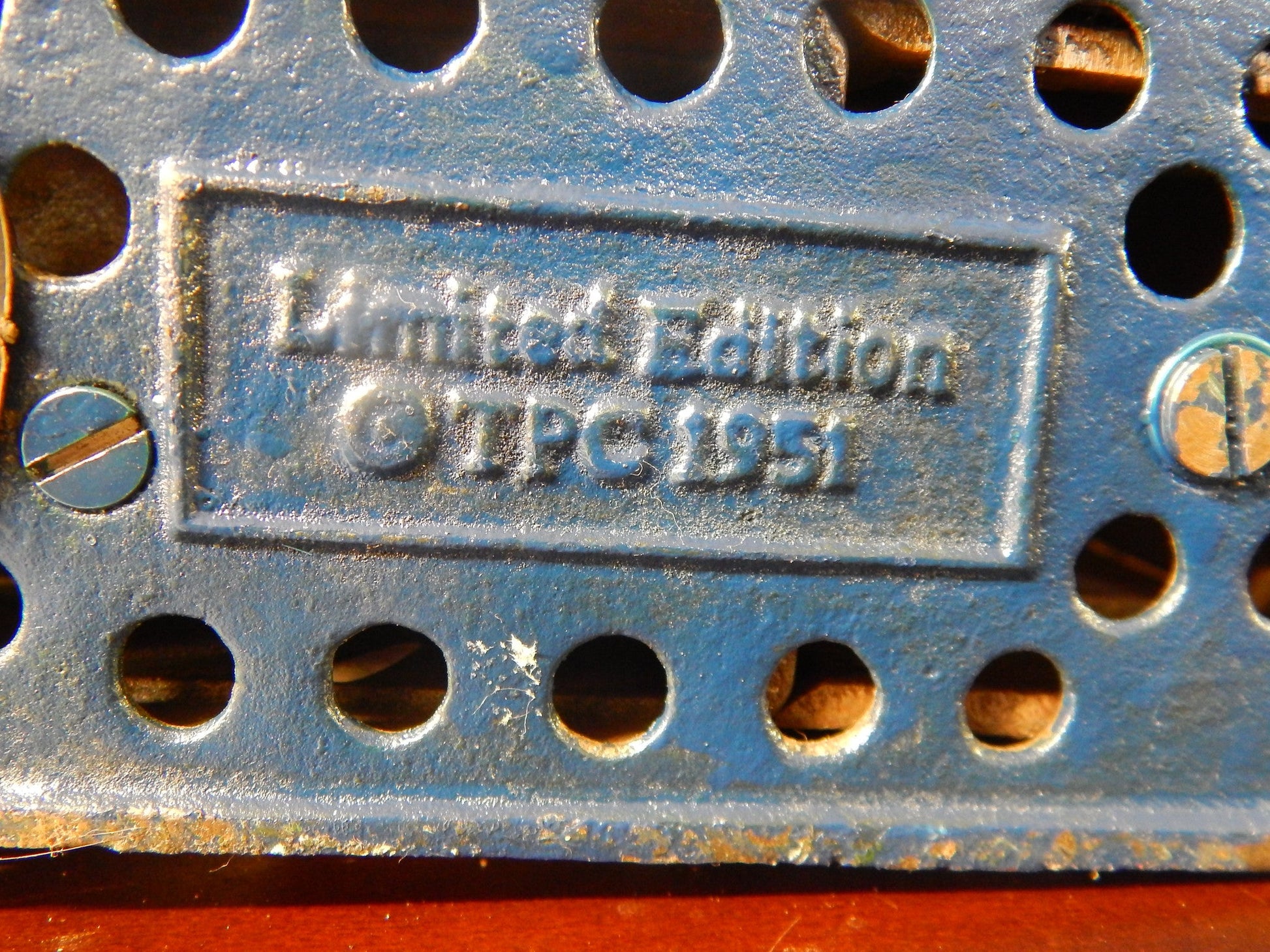 A wonderful reproduction of an American cast iron mechanical toy coin bank that showcases the skill ingenuity, craftsmanship of the late 1990s. ??