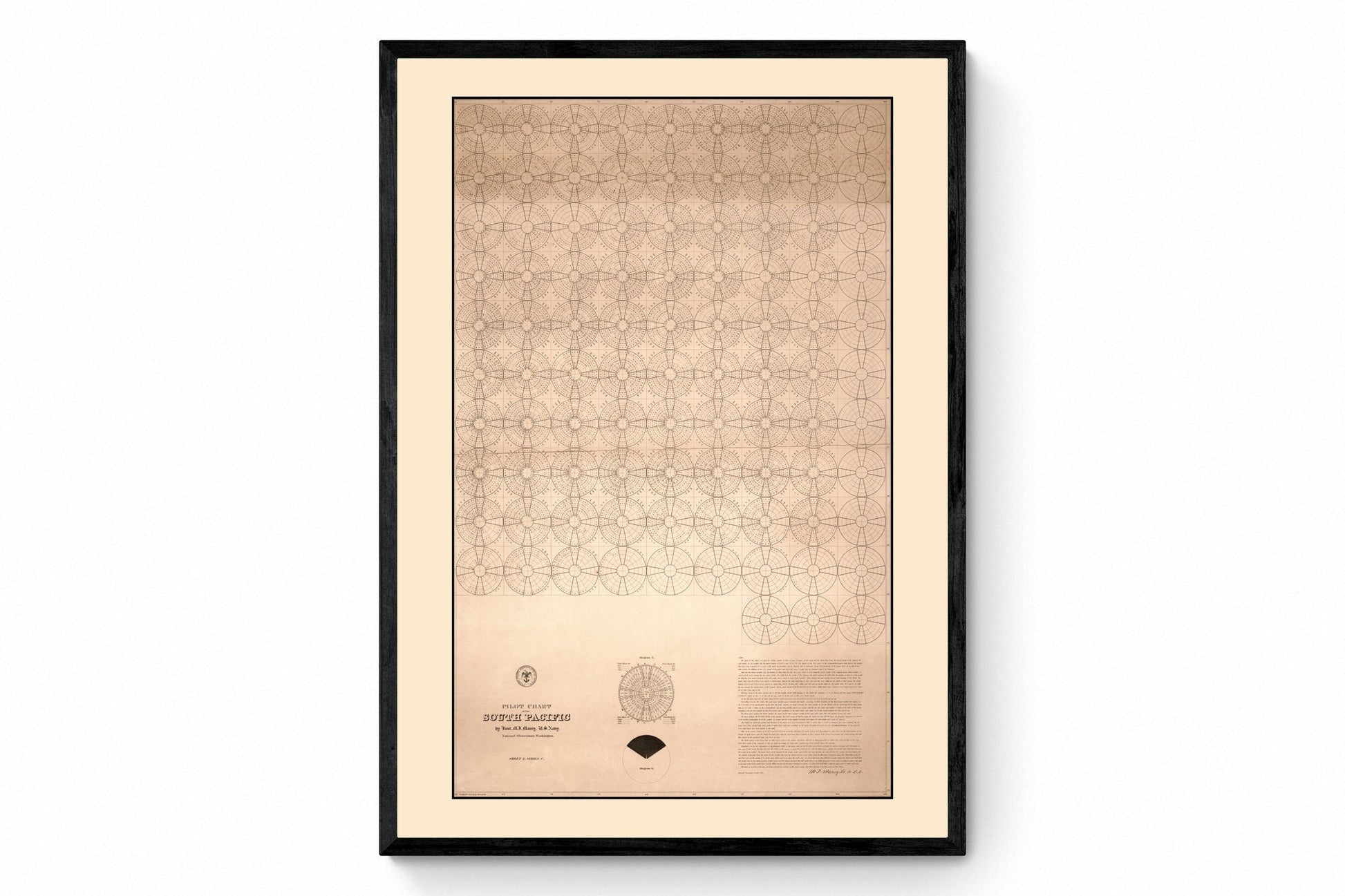 This antique-style map of Pilot Chart Of The South Pacific Dated 1851 is a high-quality reproduction of a Victorian engraving. Originally produced in the 1800s, it¡¯s ideal for those who appreciate historical cartography and vintage wall art.