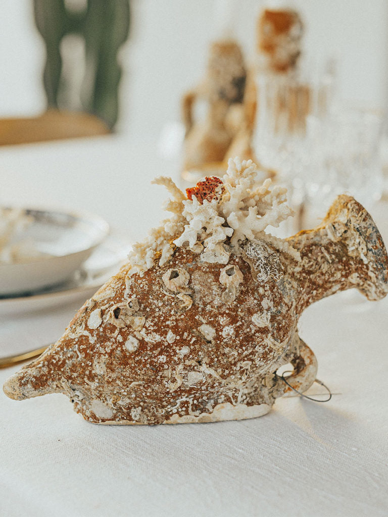 The whole process occurs under water, the ceramic art is submerged under conditions that favour marine life employing streams of water from a special pumping plant and cooling condensers. The filtering system creates special conditions that assist underwater life and accelerate the ageing of each piece, rendering it completely unique and worthy of a collector.