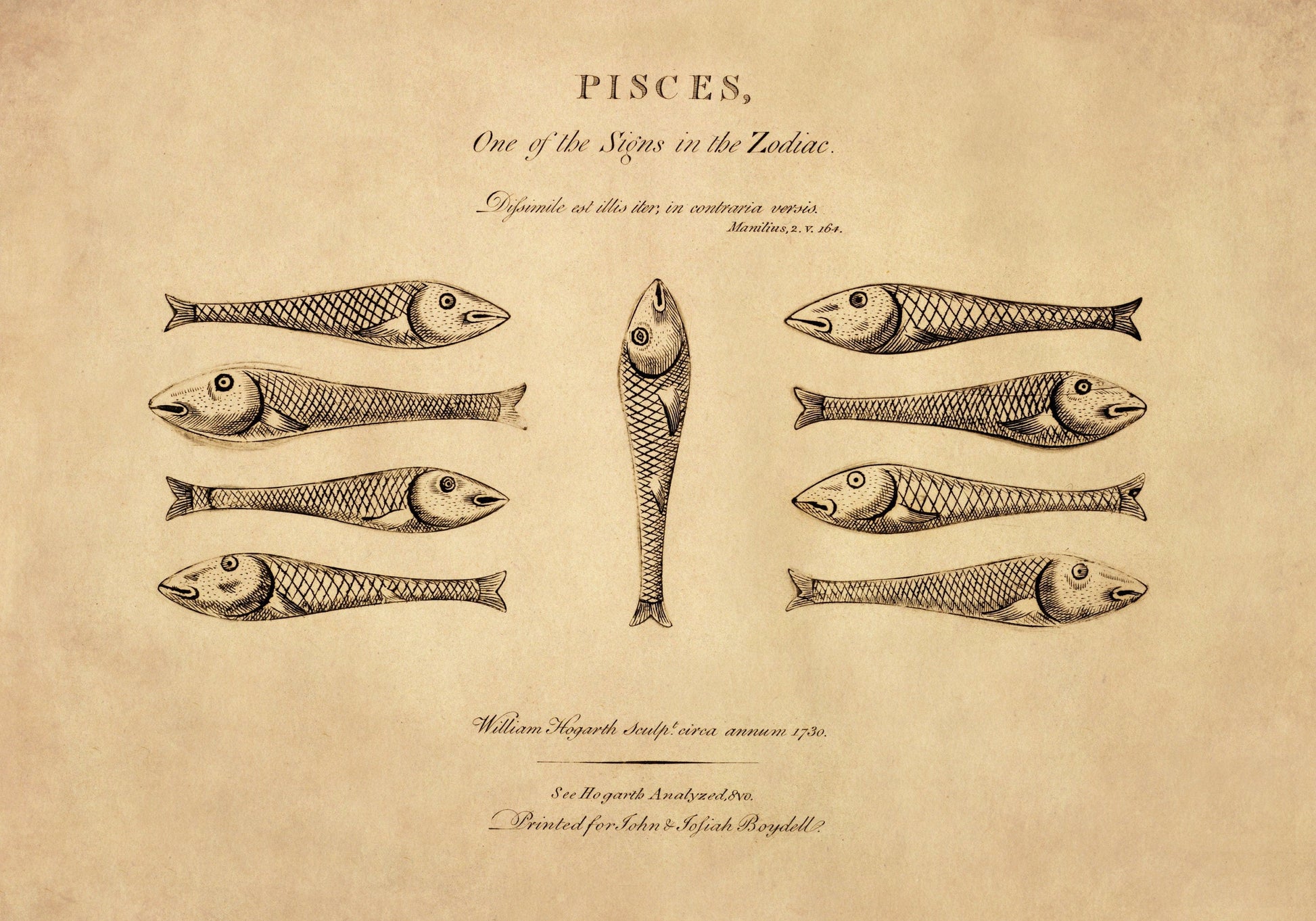 This vintage reproduction of Pisces is a faithful representation of an original 19th-century engraving ¡ª perfect for classic interiors and collectors of antique-style wall art.
