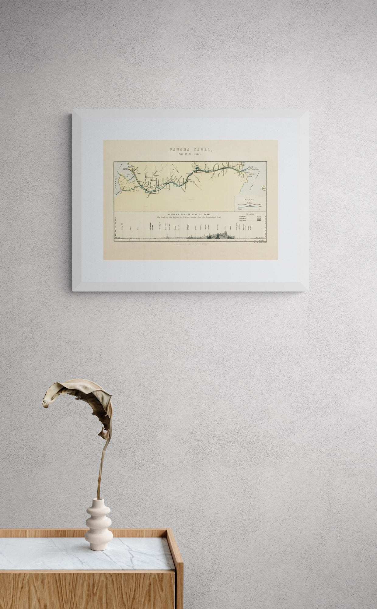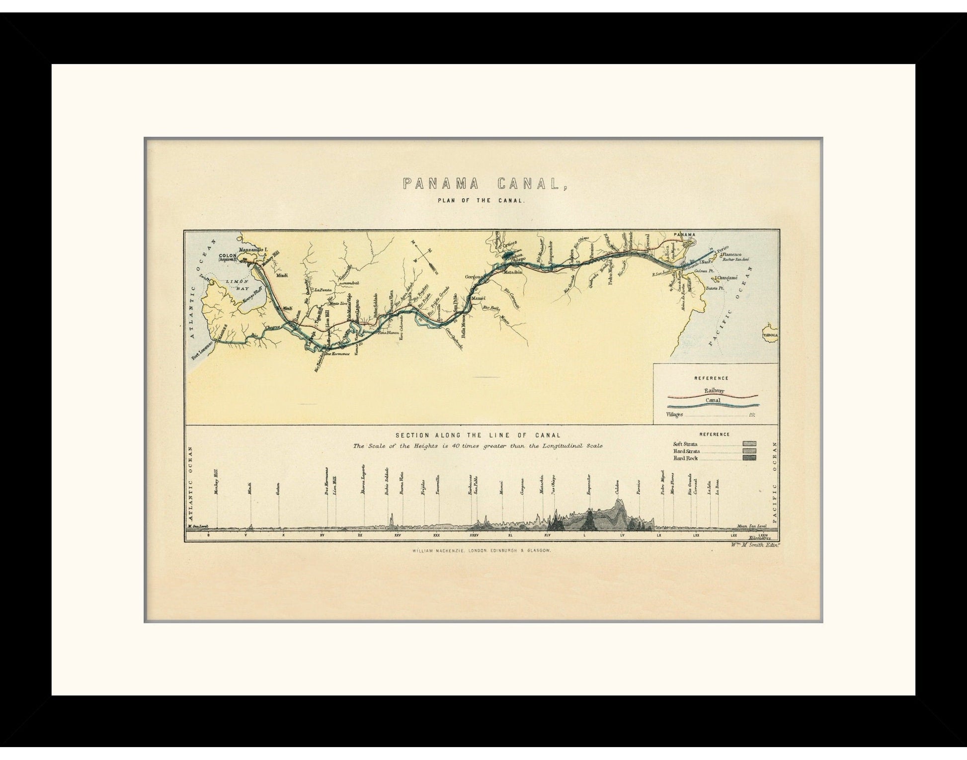 This vintage reproduction of Plan Of The Panama Canal Showing Railways, Villages And Rock Sections Along The Canal is a faithful representation of an original 19th-century engraving ¡ª perfect for classic interiors and collectors of antique-style wall art.