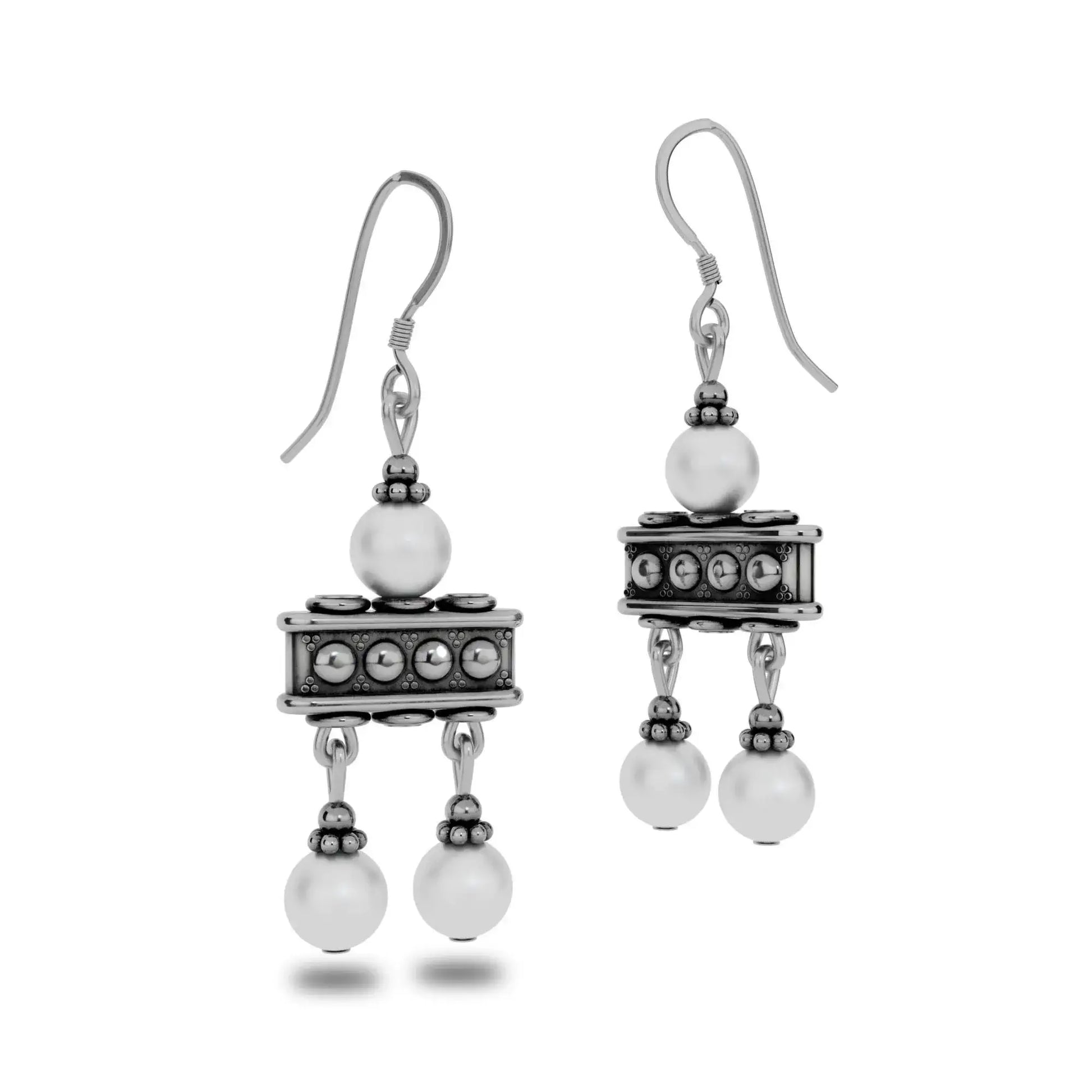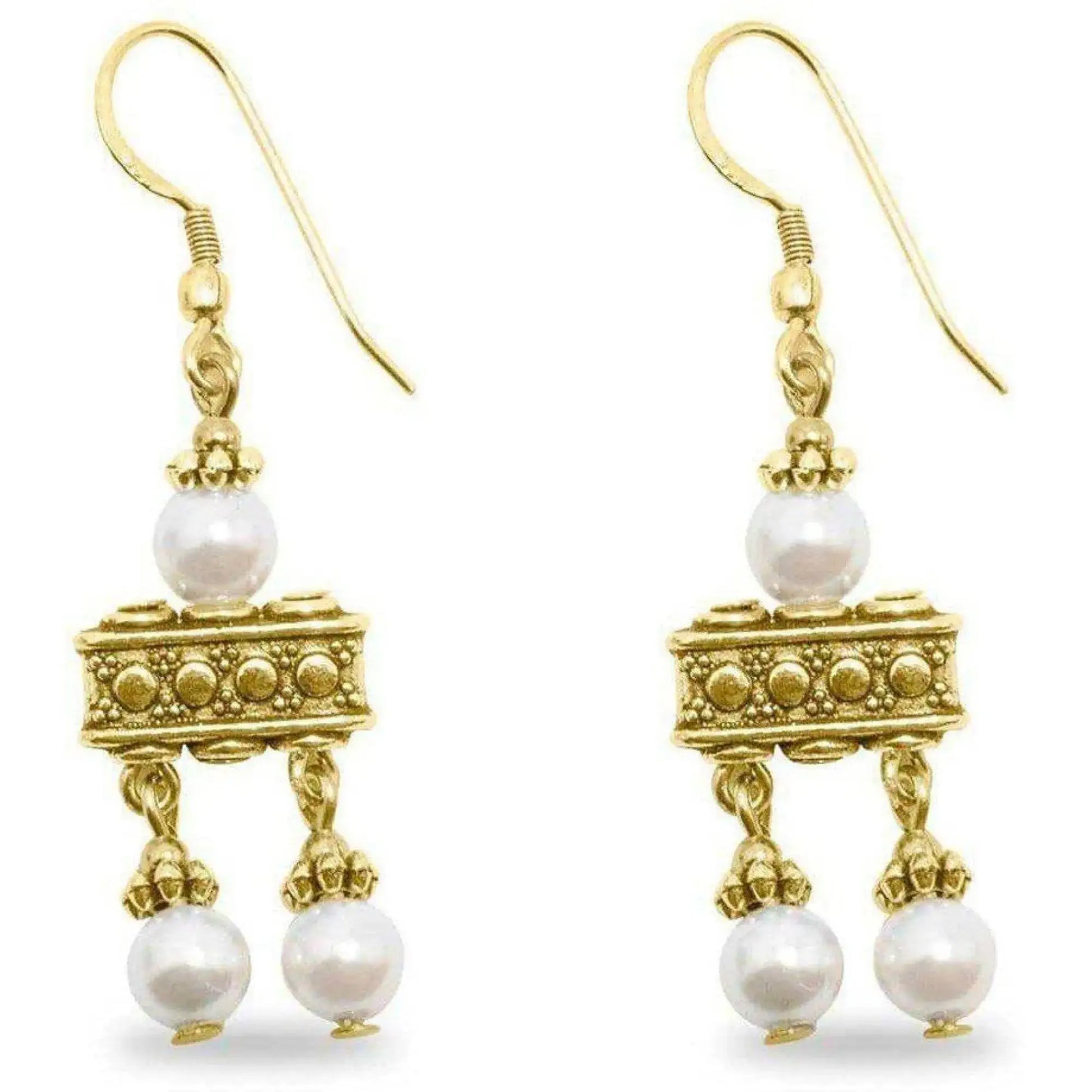 Questi orecchini?Crotalia a due pendenti con Perle, sono una replica in Argento e metallo degli orecchini romani ritrovati durante gli scavi di?Pompei, nella villa di Oplontis e Stabia, e oggi custoditi al Museo Archeologico di Napoli.