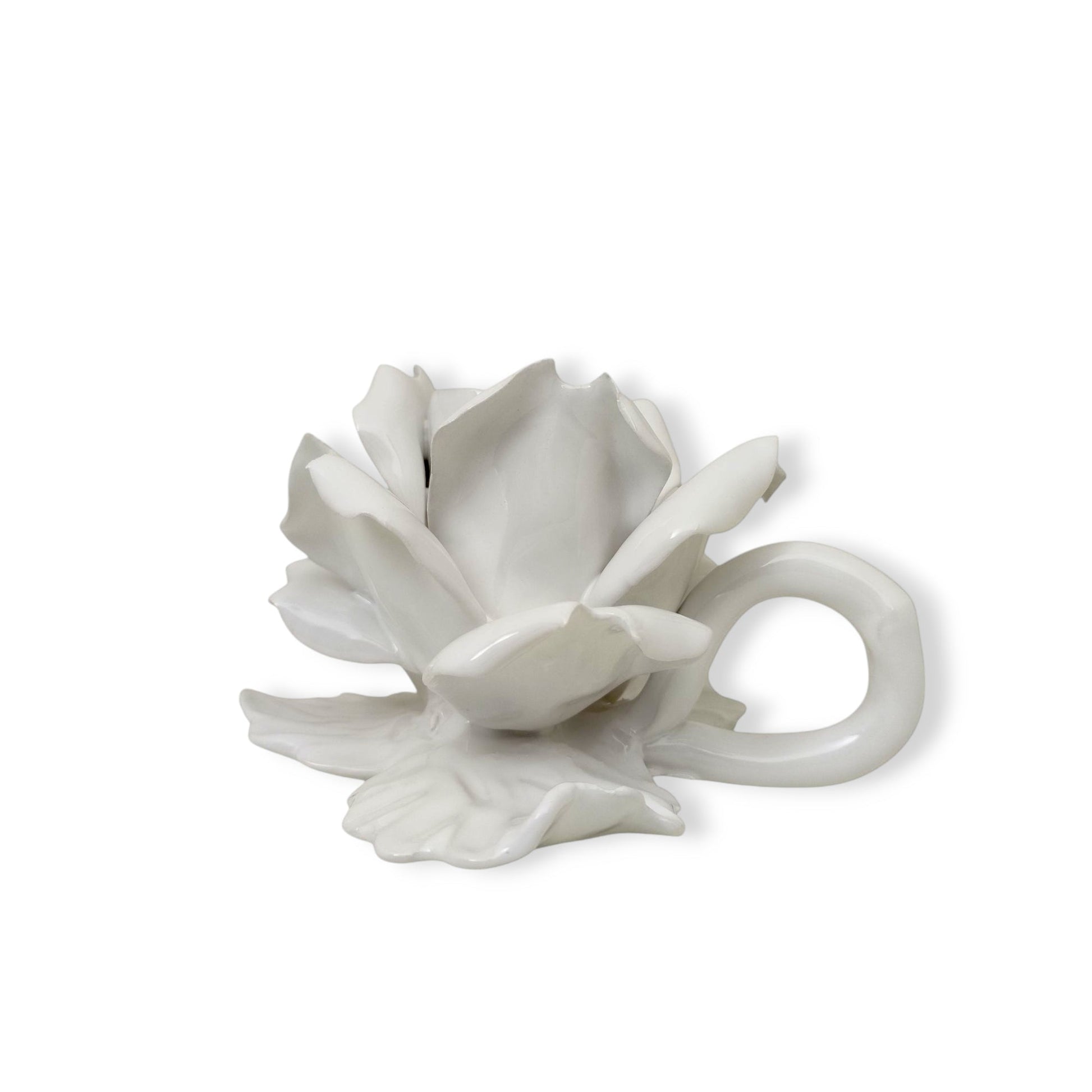 Celebra l'eccellenza dell'arte ceramica italiana con il raffinato Portacandela in Porcellana di Capodimonte realizzato dai maestri ceramisti I Borbone. Questa creazione unica raffigura una delicata rosa bianca, simbolo di purezza ed eleganza, modellata a mano secondo l'antica tradizione partenopea.