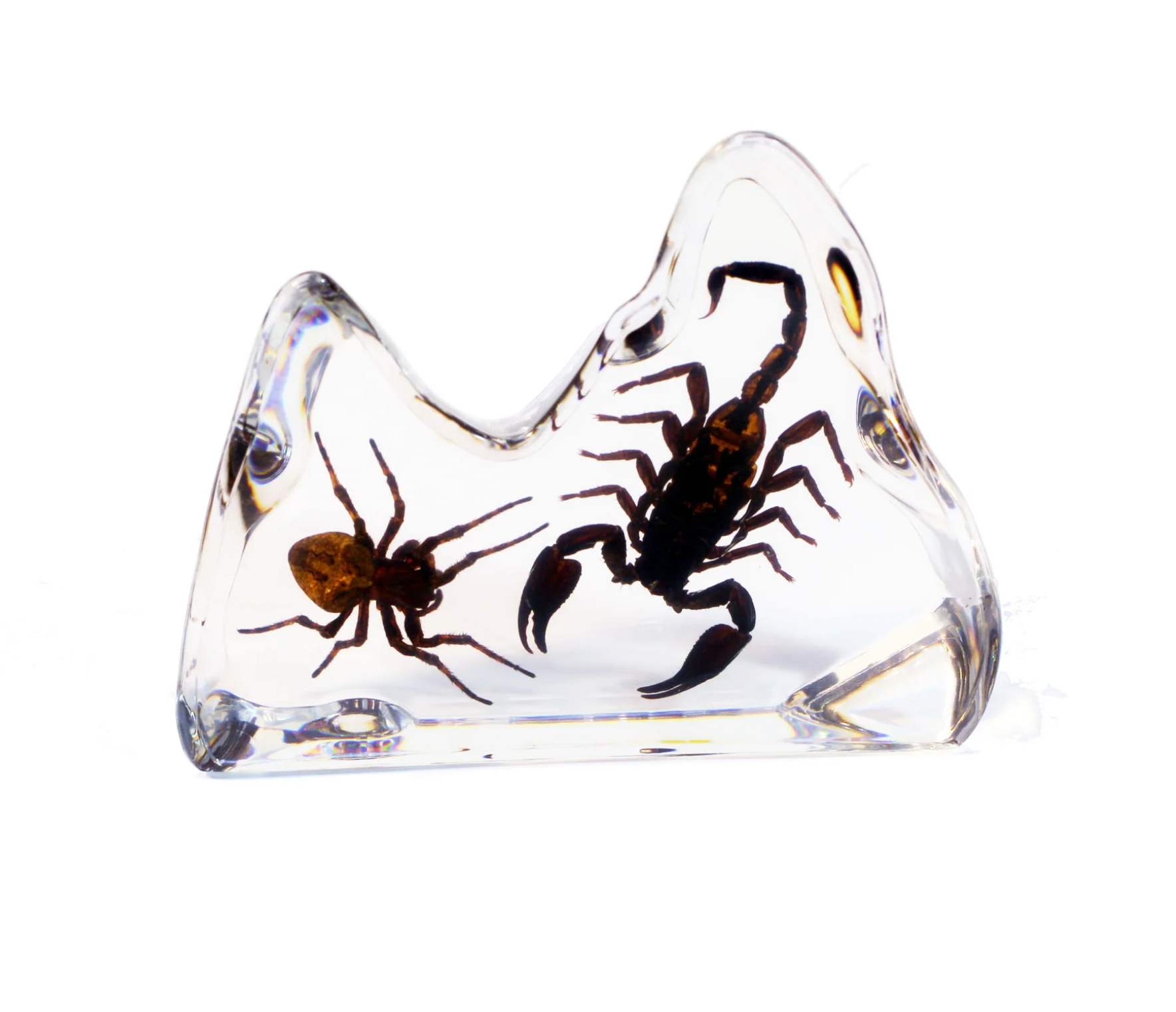 This captivating acrylic paperweight features a real spider and scorpion, perfectly preserved to showcase their intricate details. Whether you're a bug enthusiast, an educator, or simply looking for a unique conversation piece, this fascinating display offers a glimpse into the incredible world of arthropods. Durable and visually striking, it¡¯s a functional desk accessory that doubles as a miniature museum exhibit!